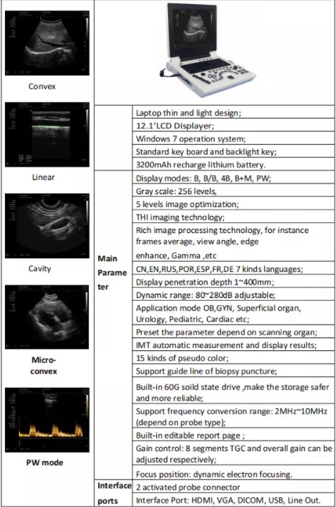 Probe available : Convex,linear,rectal linear,micro-convex probe